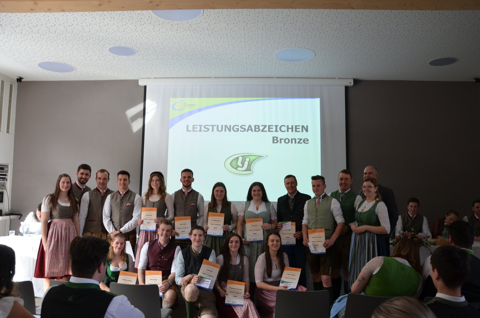 Auch heuer wieder durften wir einige unserer aktiven Mitglieder mit dem Leistungsabzeichen in Bronze und Silber ehren. Ebenso wurde dem ehemaligen Leitungsteam der Landjugend Deutschlandsberg Veronika Pölzl und Georg Waltl das Ehren.Wert.Voll. verliehen. Dieses Abzeichen bekommen jene Mitglieder, welche besondere Verdienste in der Organisation und bei der Weiterentwicklung der Landjugend mitgewirkt haben.